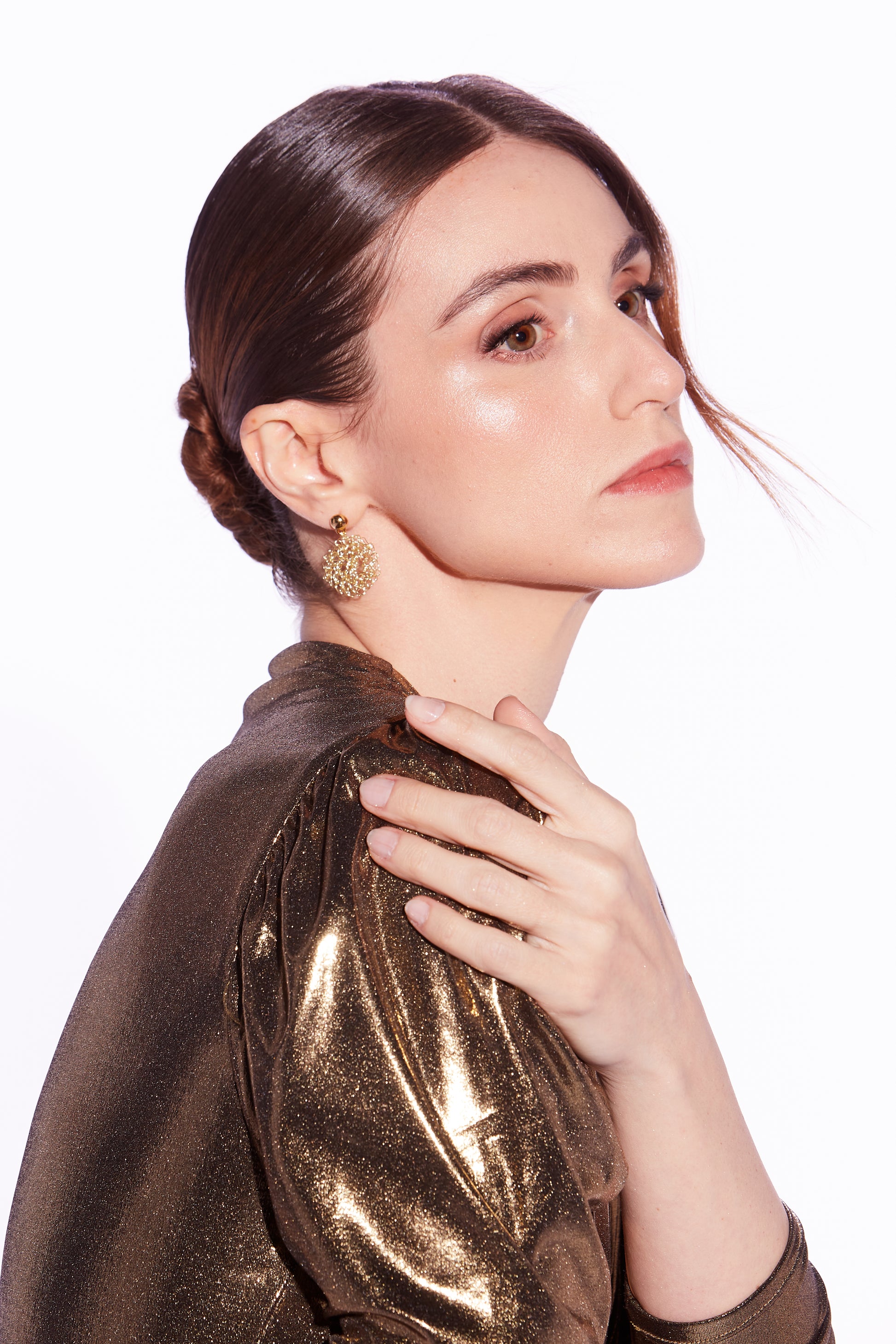 Par de brinco de crochê com fio de metal, com pino em aço cirurgico
