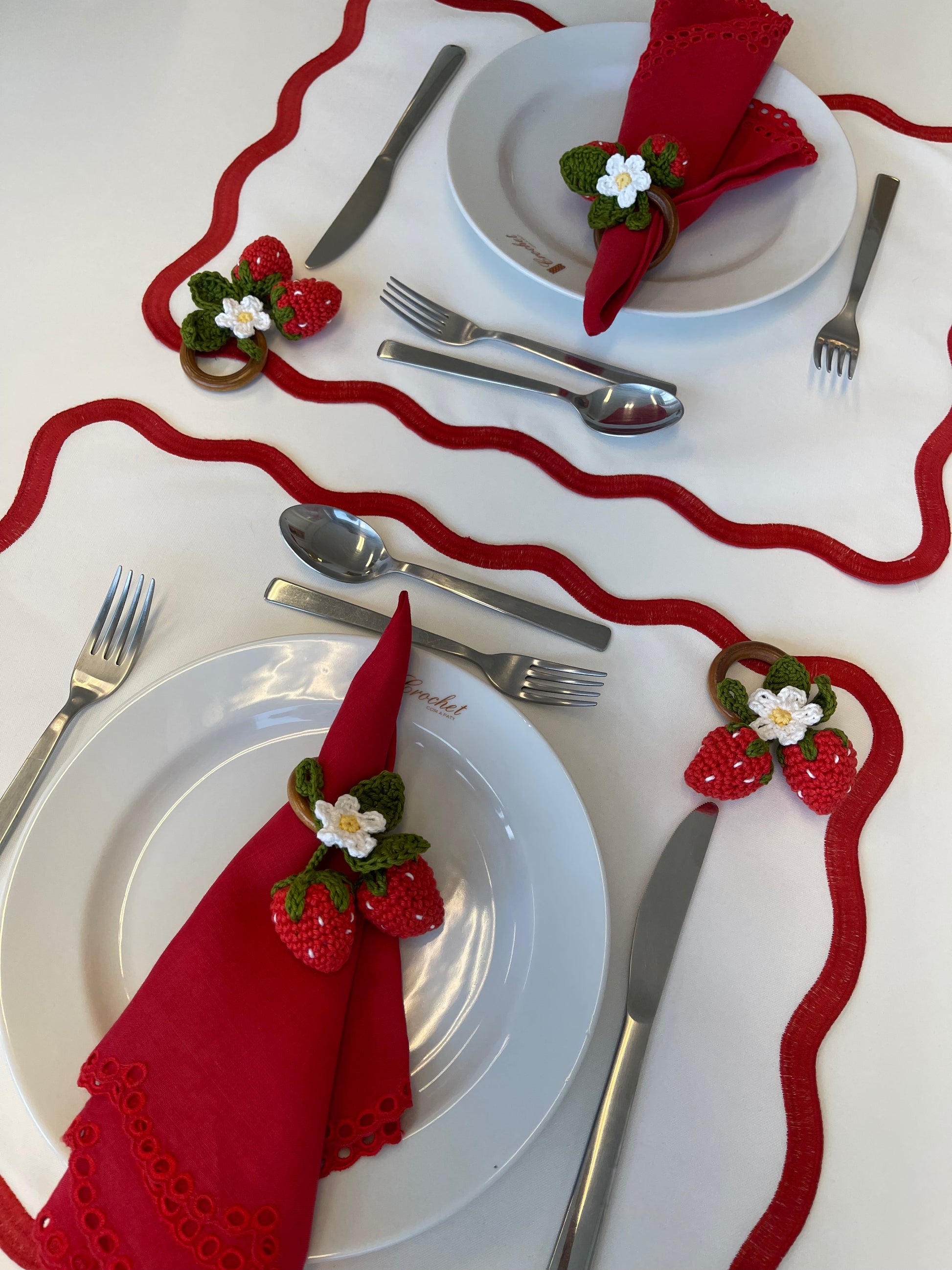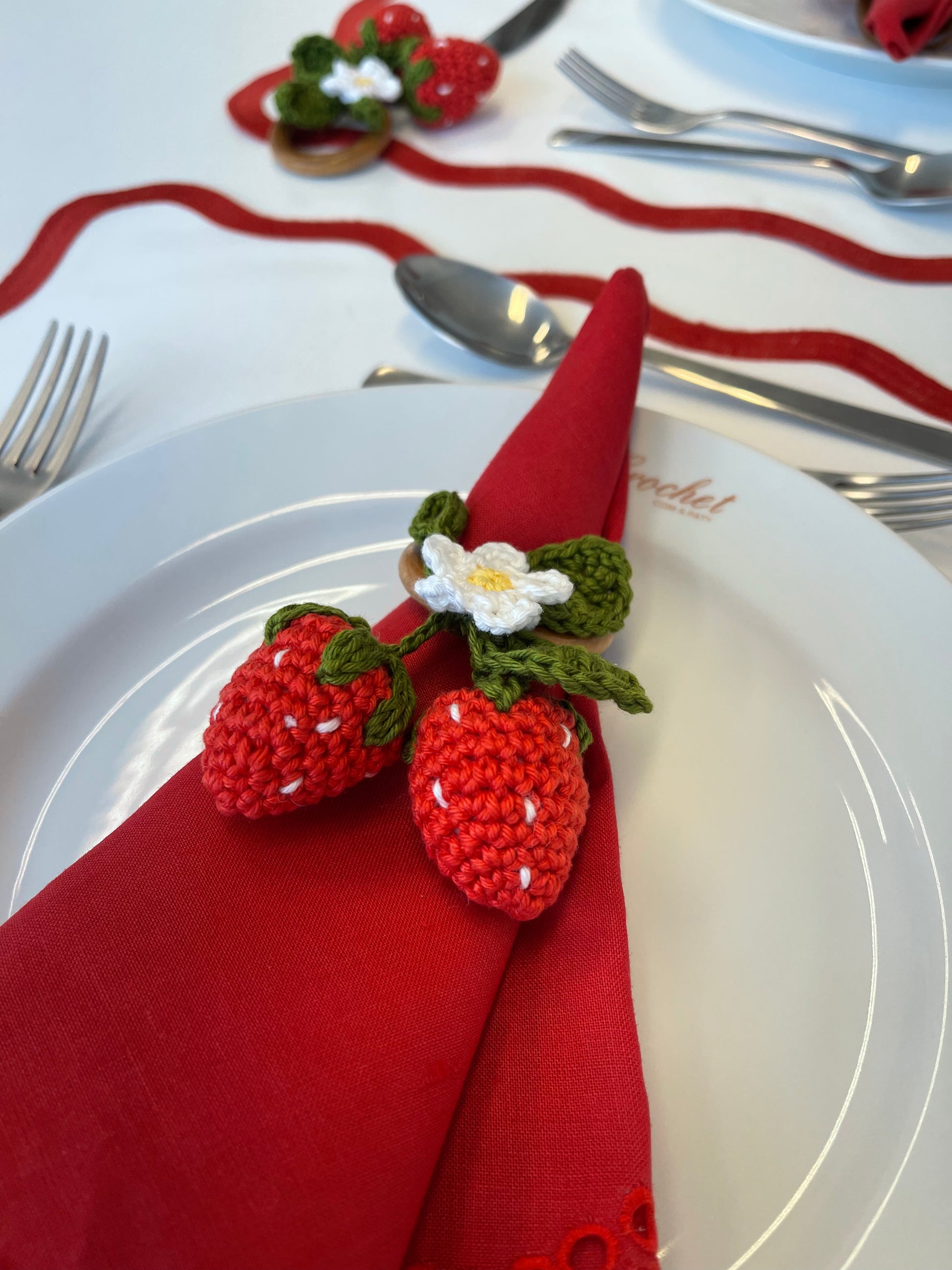 Porta Guardanapo de Morango em crochê com argola de madeira
