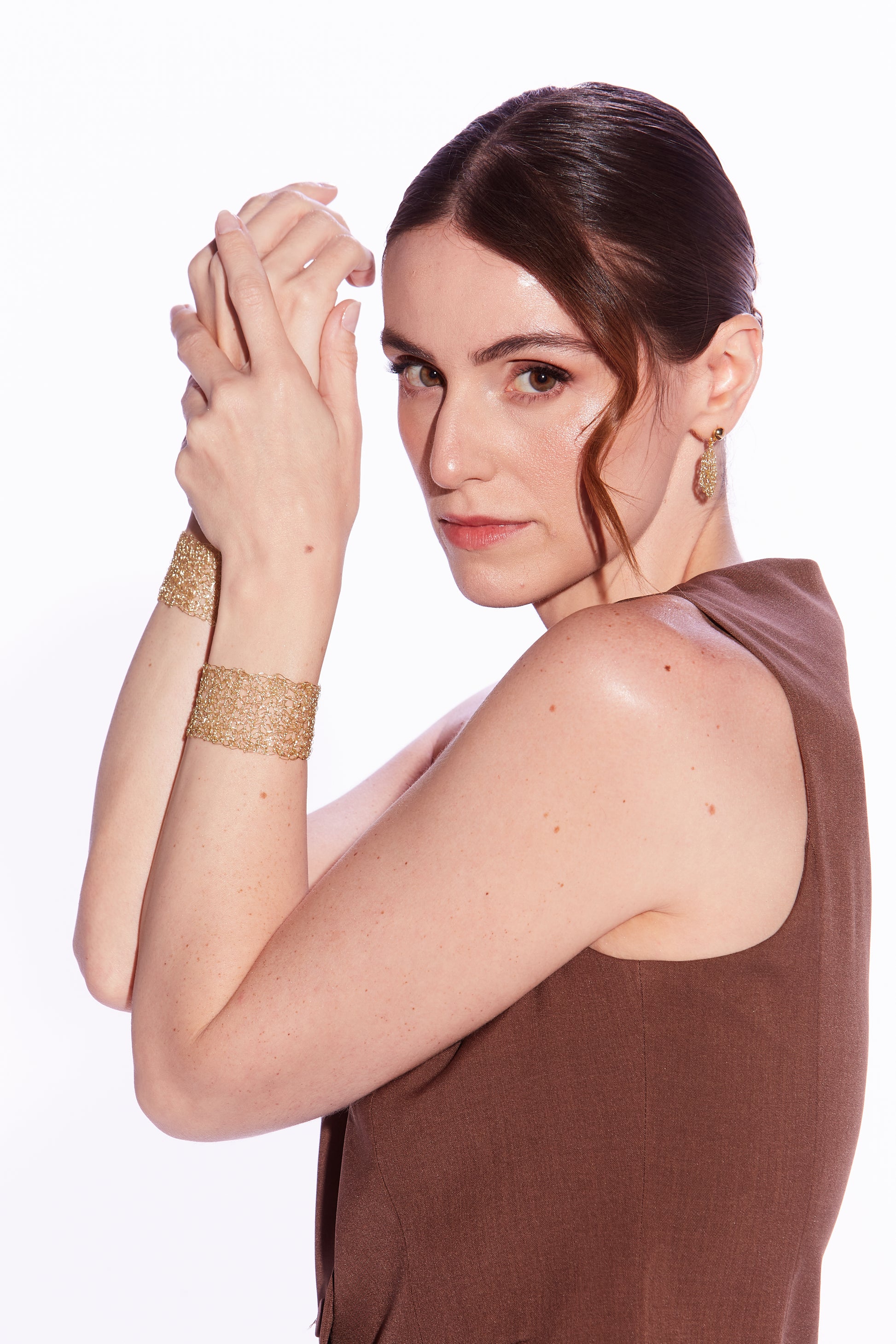 Pulseira de crochê com fio de metal e fecho imantado retangular