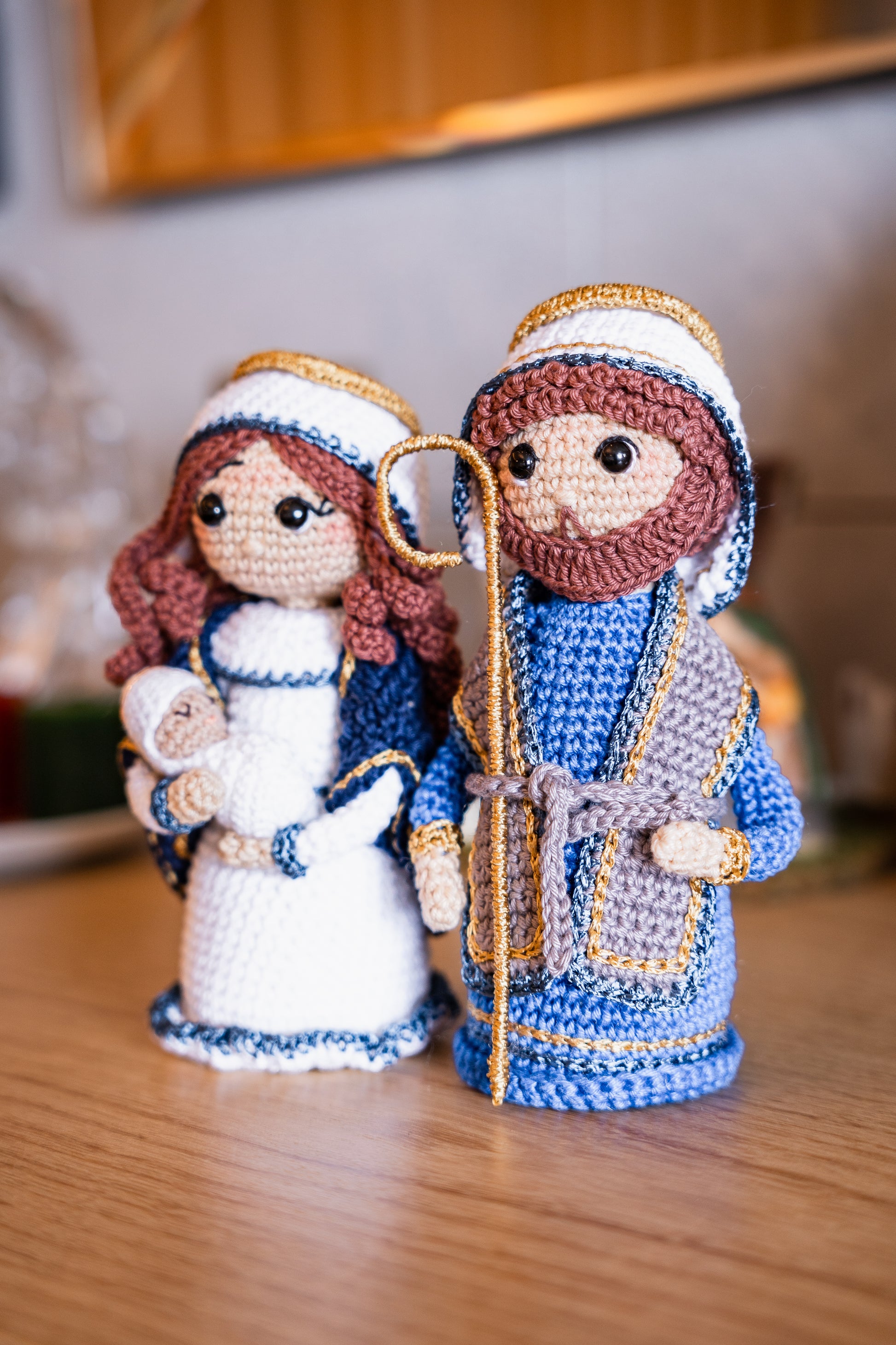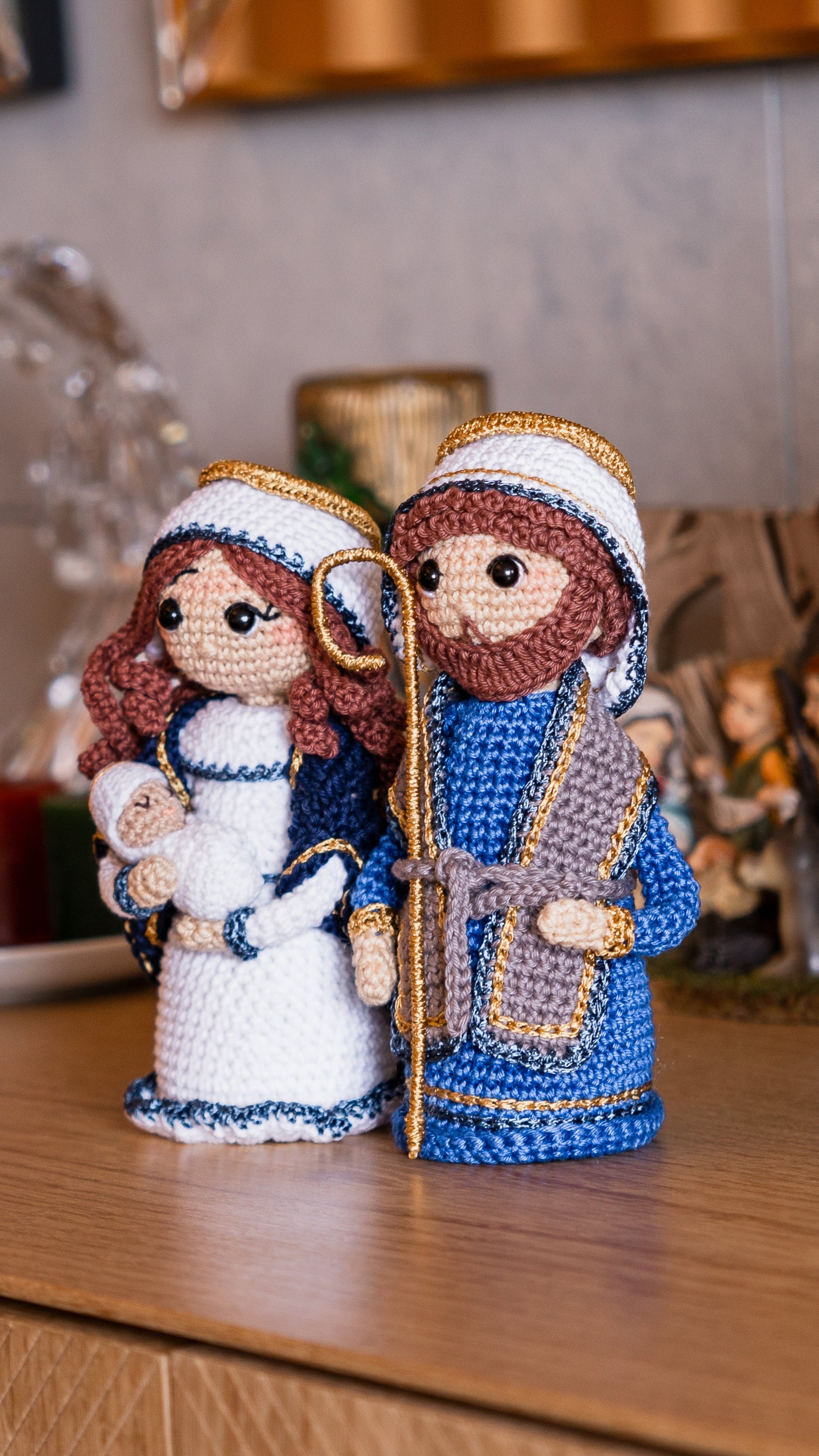 Jesus, Maria e José de crochê